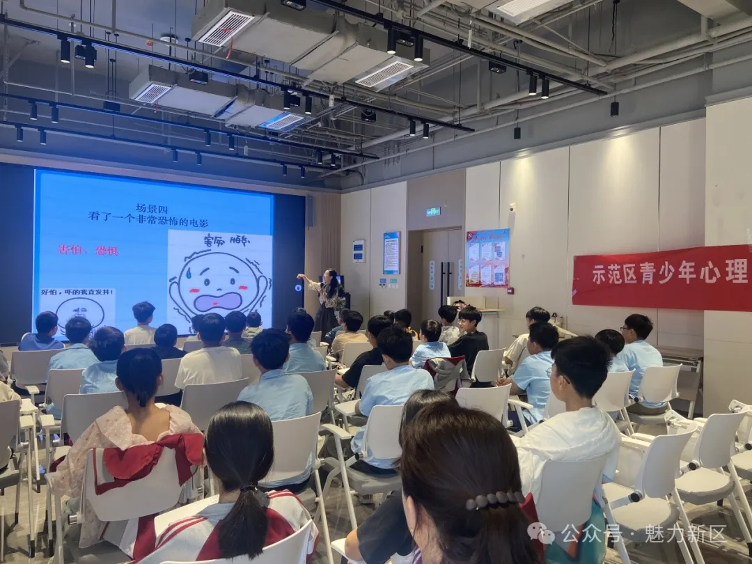 为扎实推进2024年青少年心理健康服务进村(社区)行动,着力提升未成年人心理健康教育水平,塑造青少年积极向上的人生态度,激发全社会对青少年心理健康的广泛关注与深度关切,市城乡一体化示范区总工会于5月16日上午携手心理健康讲师郭琴,走进示范区便民服务中心为40余名学生开展主题为“学会调控情绪”青少年心理健康讲座。
