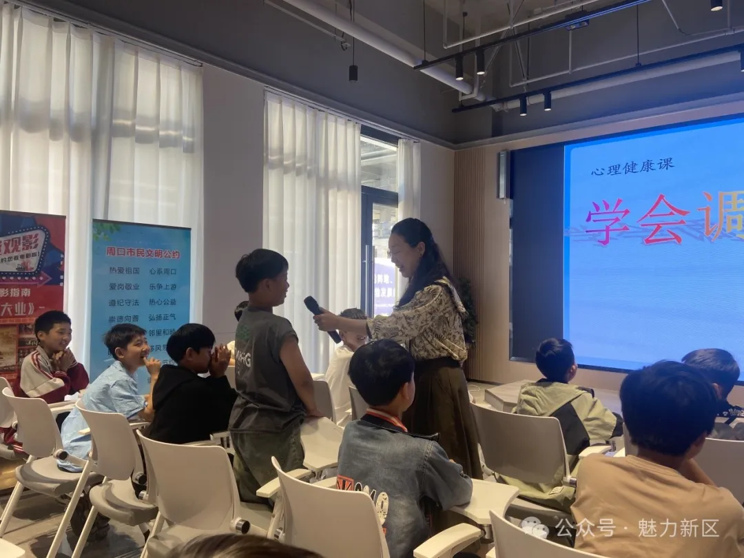 讲座中,郭老师从认识情绪、情绪的分类、情绪的影响、调节情绪的方法等方面,以课件、励志影片、讲故事和游戏互动的方式进行讲授,从多个情景模拟、引用实际案例等方式讲解情绪对健康的影响,同时通过提问的方式进行互动,引导同学们客观认识情绪、接纳情绪、管理情绪,帮助孩子们在遇到问题时要主动跟父母、老师交流,舒缓心理压力,通过适量的运动和培养良好的兴趣爱好改善低落的情绪,不管正向情绪还是负向情绪都是正常的,要学会接纳自己的情绪,做情绪的主人。整个活动现场十分轻松活泼,充满欢声笑语。