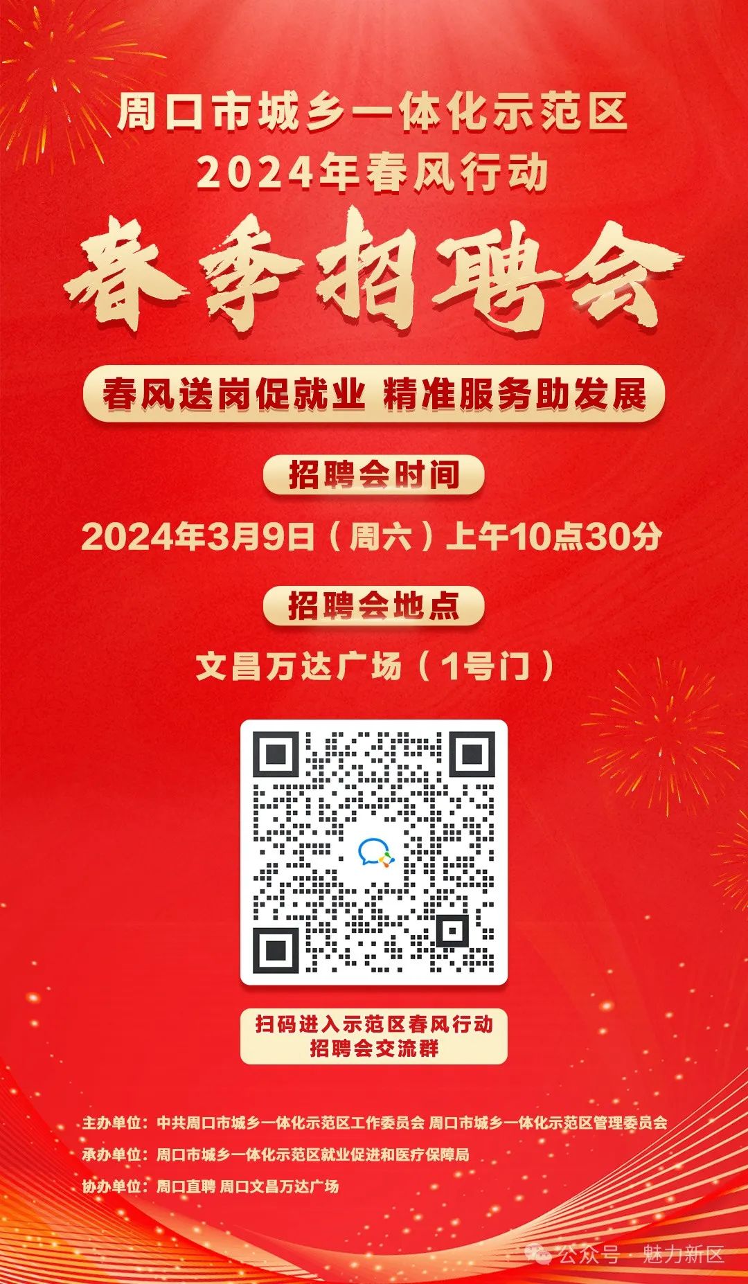 春风送岗促就业,精准服务助发展!市城乡一体化示范区定于3月9日在文昌万达广场(1号门)举办2024年“春风行动”春季大型招聘会。