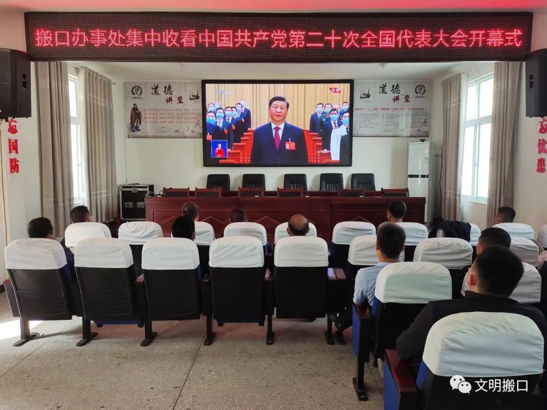 中国共产党第二十次全国代表大会于2022年10月16日10时在北京隆重召开,示范区搬口办事处组织班子成员、各部门负责人及支部书记在会议室集中观看中国共产党第二十次全国代表大会开幕会直播,各村社区组织干部也积极收看了会议盛况,认真学习领会党的二十大精神,为今后的工作指明方向,注入强大动力。