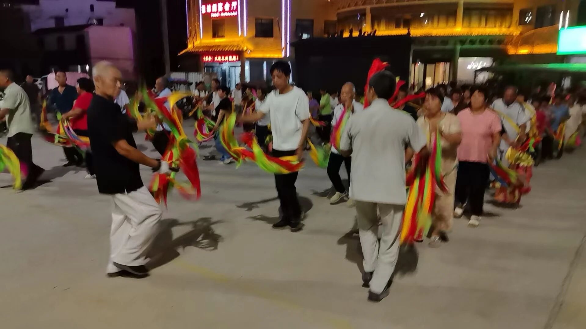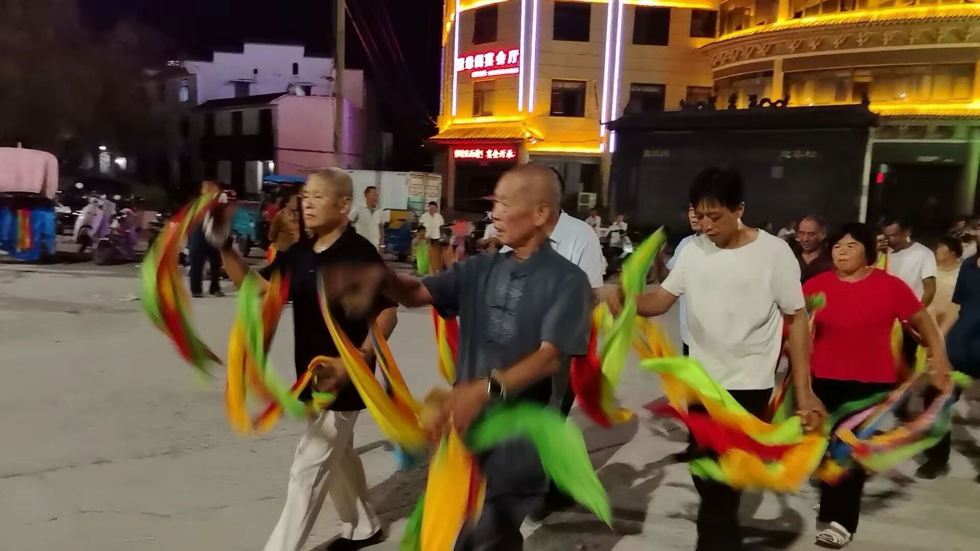 傍晚时分,村民们陆续来到新时代文明实践广场。广场上锣鼓喧天,人们舞动彩绸,变换队形,踏着欢快的节拍扭起秧歌。大家精神抖擞,脸上洋溢着喜悦的笑容,展现出新时代农民健康乐观、积极向上的精神风貌。队伍中既有精神矍铄的老人,也有步伐矫健的中青年,还吸引了放学的孩子在一旁模仿学习,其乐融融的景象生动诠释着乡土文化的代际传承。