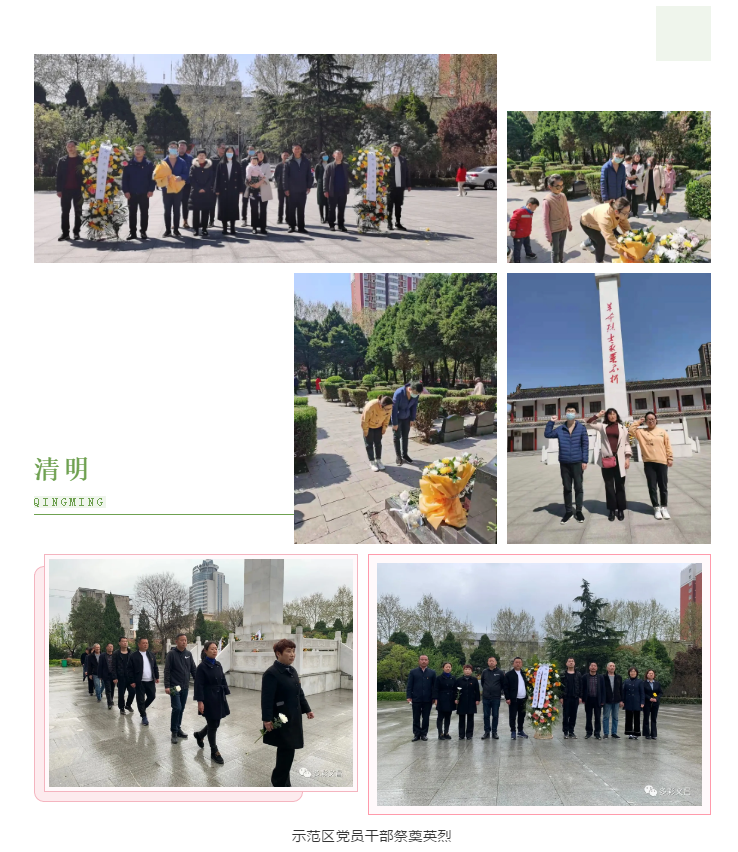 为更好的缅怀革命先烈,传承红色基因,把开展党史教育同弘扬优秀传统文化结合起来,清明节假期,示范区机关党委组织开展了意义重大,形式多样的“清明祭英烈”活动。