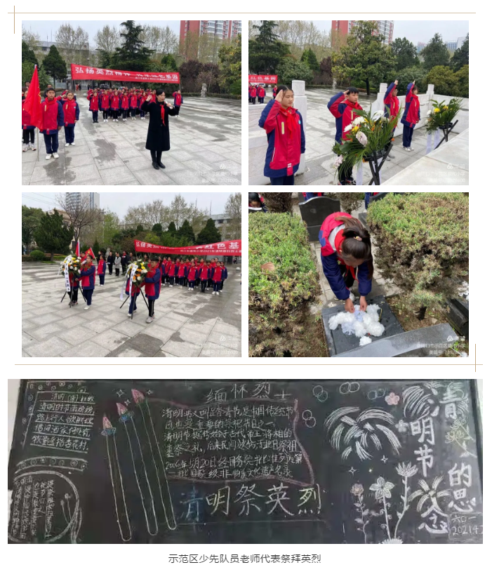 示范区少先队员在老师的带领下也纷纷来到先烈的墓碑前,开展了以:“弘扬英烈精神、传承红色基因”为主题的祭扫烈士墓碑活动。师生代表齐唱《中华人民共和国国歌》,在先烈的陵墓前孩子们又经受一次灵魂的洗礼,纷纷表示,要努力学习,爱国爱家,为祖国的强大和社会的和谐作出应有的贡献。