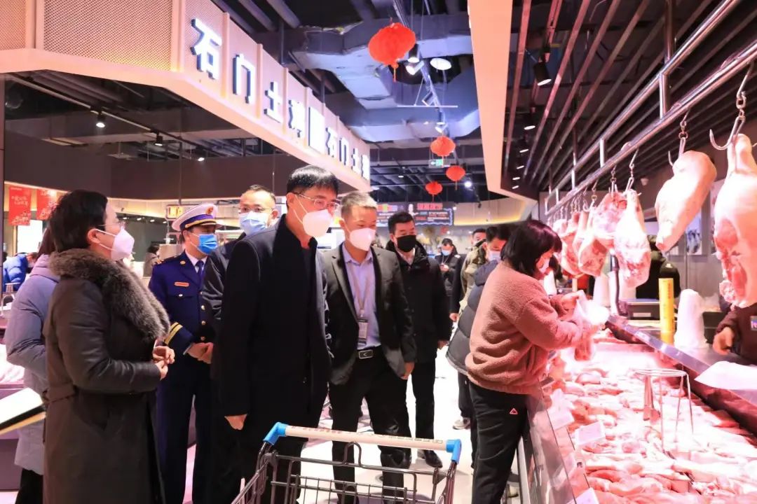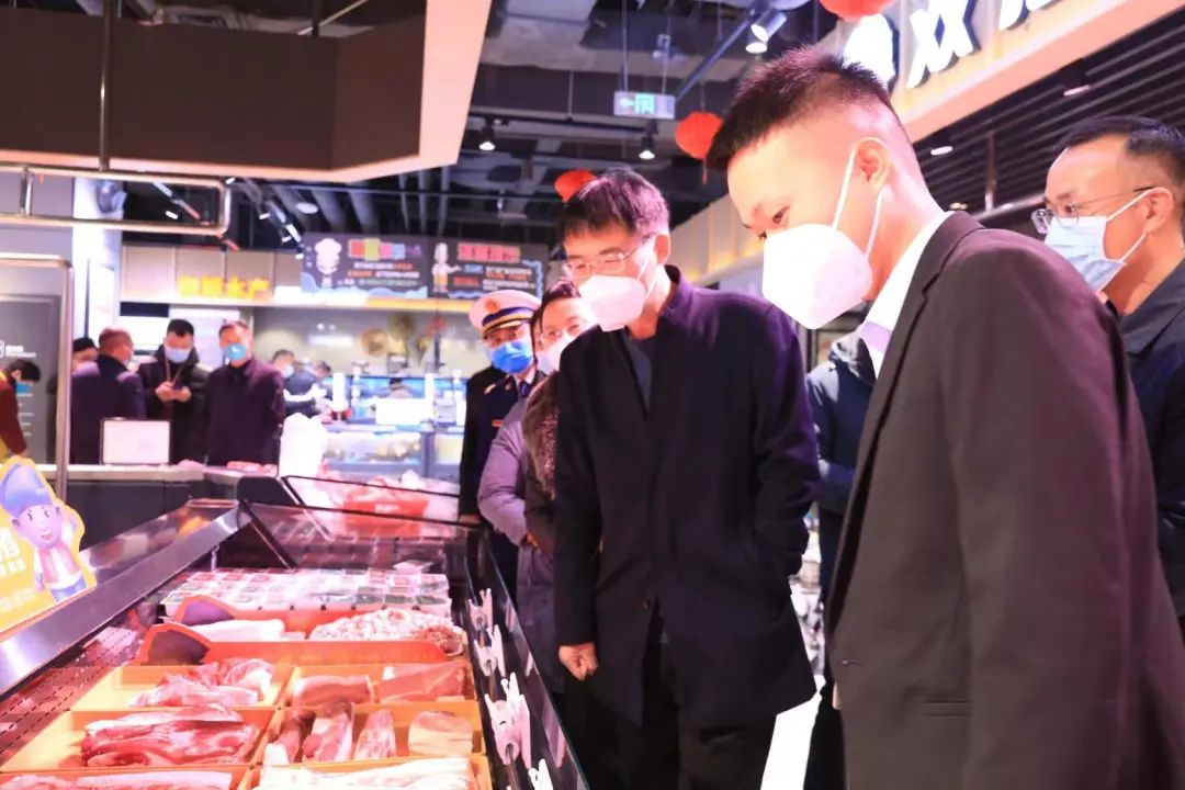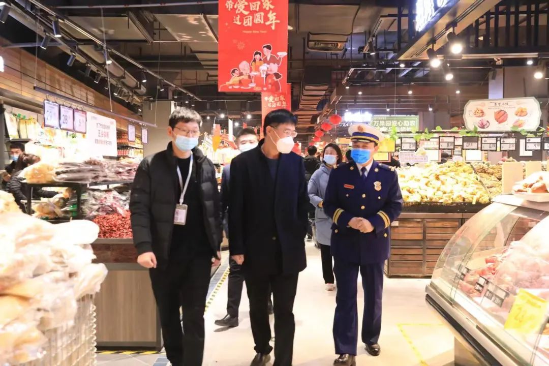 1月21日,农历腊月三十,市城乡一体化示范区管委会主任张晓带队督导检查辖区商超春节期间安全生产、食品安全、消防安全、保供稳价等工作,市市场监督管理局示范区分局局长邢海荣、文昌办事处及区直相关责任单位负责同志陪同。