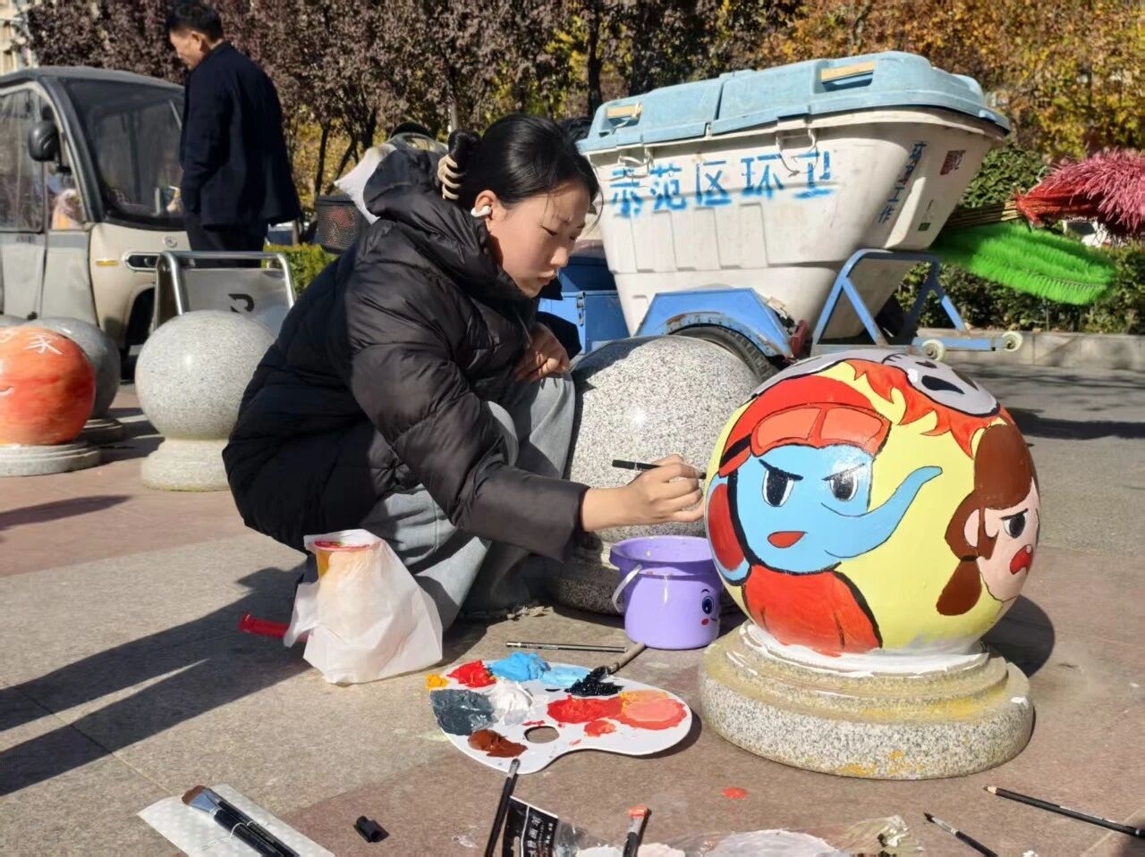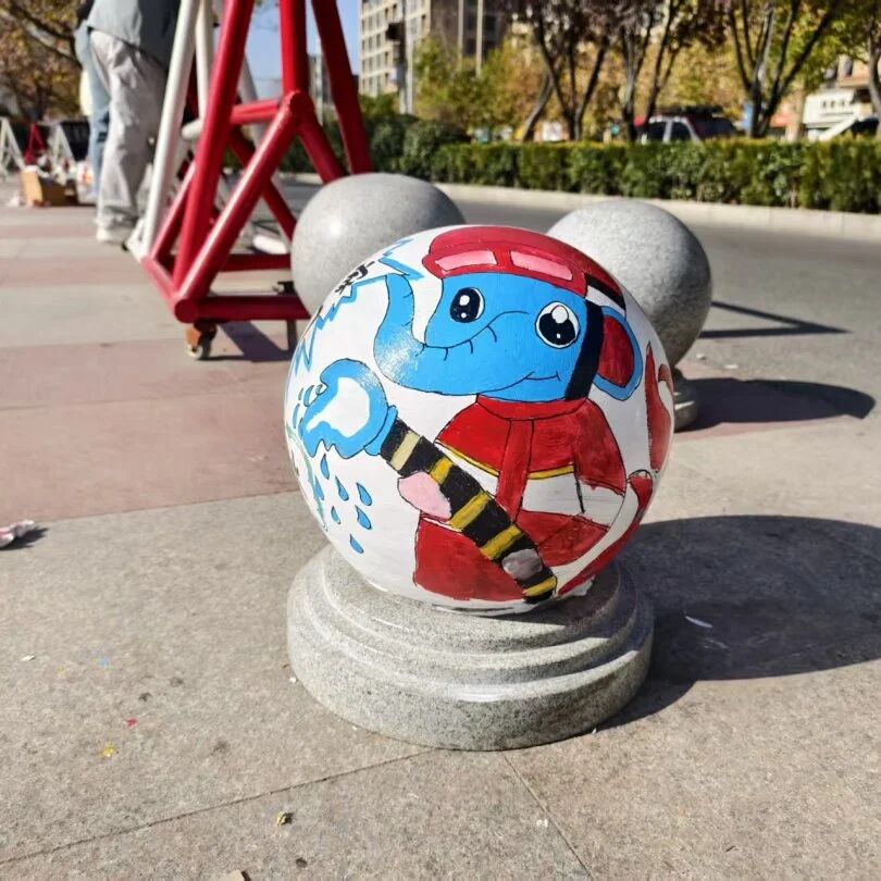 近日,示范区消防工作室创新宣传形式,组织人员对辖区小区、学校等人员密集场所周边的隔离墩开展消防卡通涂鸦创作。一个个绘有卡通消防员形象、防火宣传漫画的隔离墩,从原本灰蒙蒙的普通设施变身憨态可掬的“消防宣传墩”,成为街头亮眼风景,吸引过往市民驻足关注,在潜移默化中普及消防安全知识。
