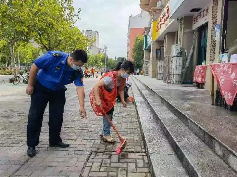 在府汇街和府苑街交叉口,不少商铺店主主动做好“门前三包”工作,为全国文明城市创建工作贡献自己的力量。在一家餐饮店门口,工作人员按照城管队员给出的方案对油污地面进行清理;旁边不远处的诊所门口,店主将地砖缝隙中长出的小草进行拔除;油饼店外,女店员拿起扫帚对门口地面进行清扫……“我们不仅要做组织者,更要做参与者和维护者,要用实际行动来带动广大群众、激发广大群众自觉地讲卫生,树立爱护环境的良好意识,共同维护优美、整洁、有序的城市环境。”区综合执法中心负责人王永顺说。