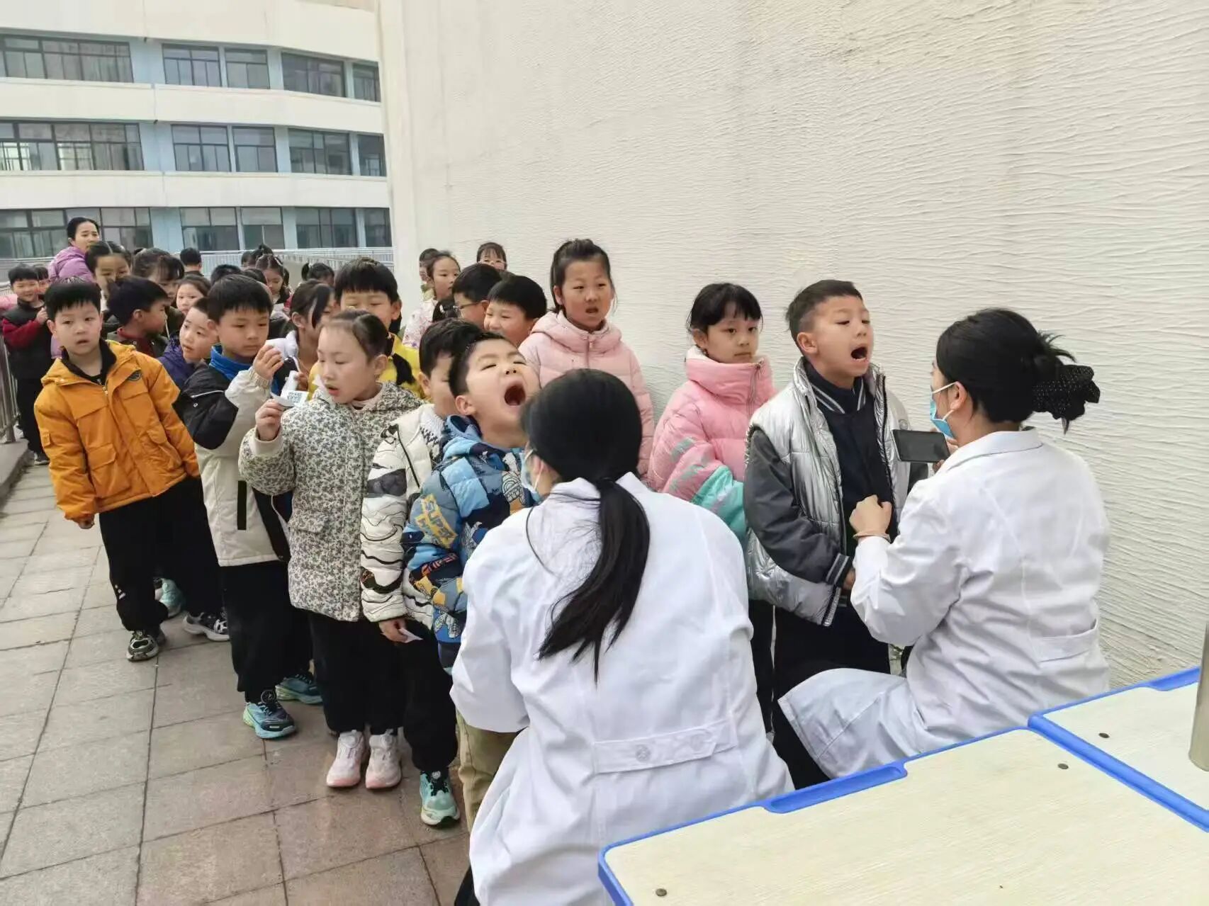 此次筛查采取“上门服务”模式,由周口市妇幼保健院专业体检团队负责,重点针对儿童肥胖、近视、心理行为异常、骨骼发育异常及龋齿五种重点健康问题。现场秩序井然,学校老师精心组织、有序引导,医务人员严格依规操作,逐一为孩子们测量身高体重、筛查脊柱发育与口腔健康,通过专业设备开展视力检测。