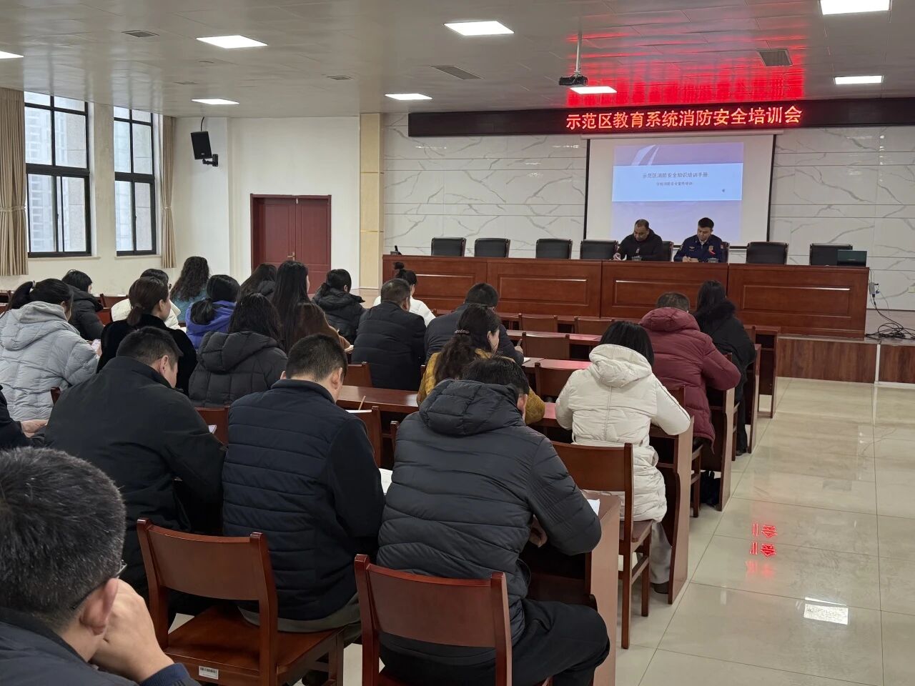 2月28日,市城乡一体化示范区社会事务管理局联合区消防救援大队组织召开全区教育系统消防安全专题培训会。各中小学、幼儿园安全副校长及安全负责人参加培训。