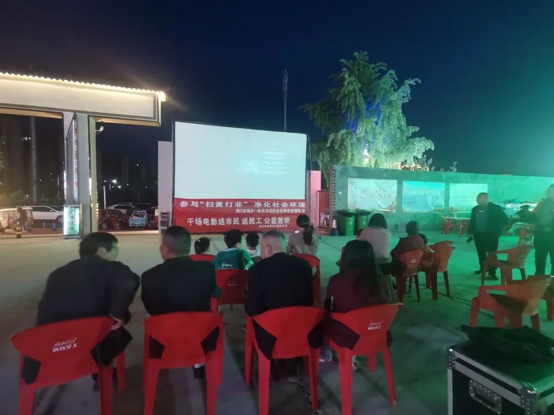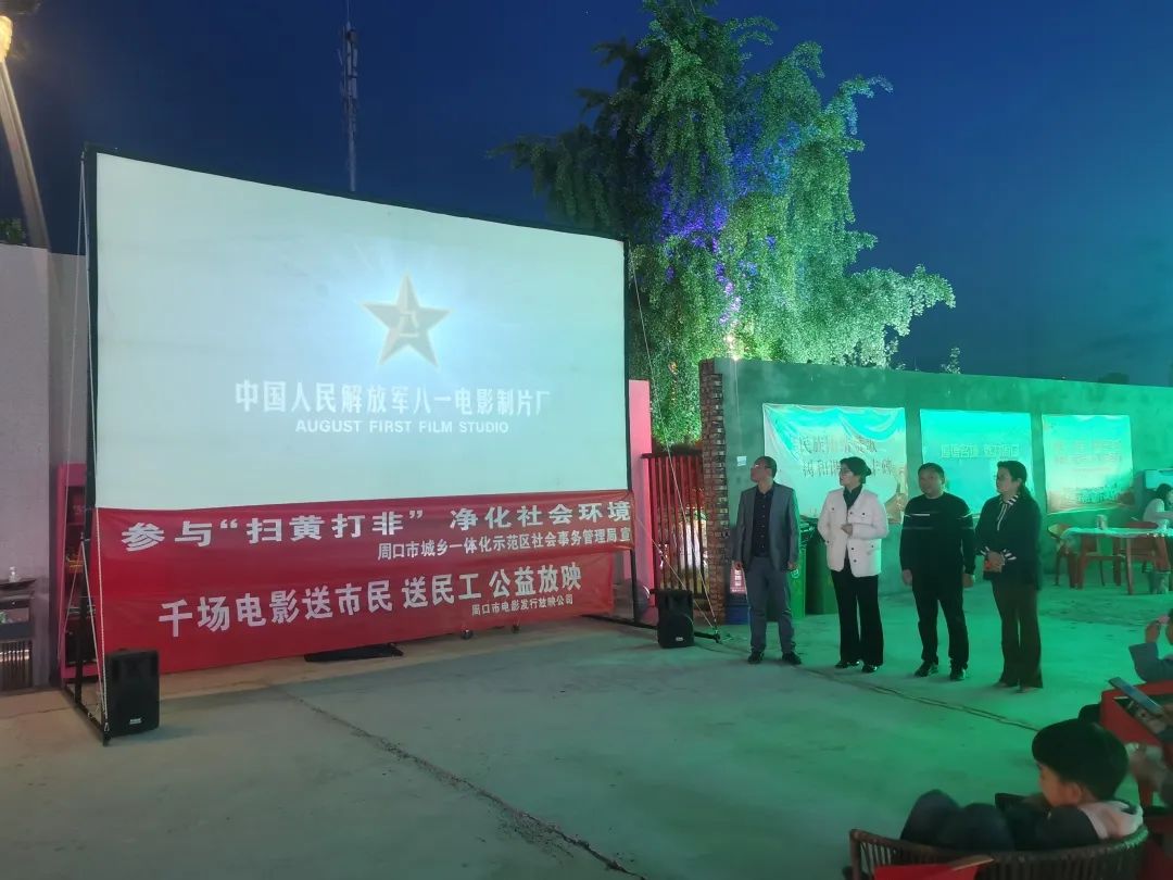 一块幕布,一架放映机,一部电影,映红一片夜空。4月26日晚7点30分,市城乡一体化示范区社会事务管理局、招商引资局联合周口市电影发行放映公司在文昌办事处赵寨美食文化广场开展“扫黄打非”送电影下基层惠民活动,进一步宣传“扫黄打非”,丰富群众精神文化生活,助力乡村文化振兴,促进“夜经济”消费,切实将“我为群众办实事”实践活动走实走深。