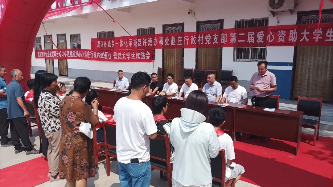 8月25日,市城乡一体化示范区许湾办事处赵庄行政村迎来了一场温暖人心的捐赠活动。村里的在外成功人士,以乡贤之名,为本村8名新大学生送上了助学金及礼品,用实际行动助力家乡学子逐梦未来。