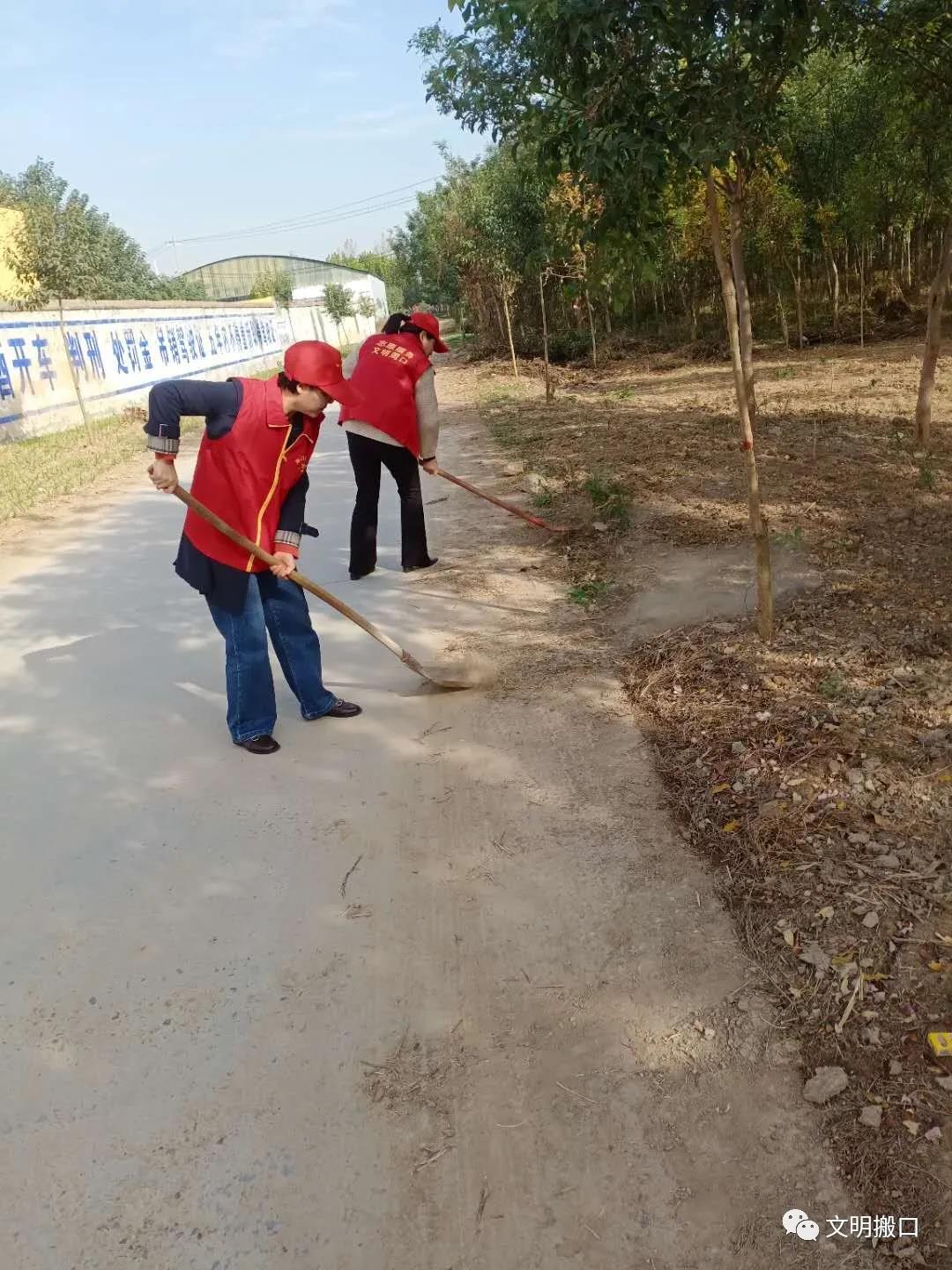 活动现场,志愿者发挥先锋模范作用,身穿志愿服,手拿扫帚、铁锹等劳动工具对道路沿线的杂草、垃圾、杂物等进行认真仔细地清理,她们不怕脏不喊累忙得热火朝天。在志愿者的带动下村里群众自发参与到清扫队伍中,经过大家的努力,街道干净了、房前屋后无杂物了,大大改善了村庄卫生状况,增强了群众环境保护意识,融洽了党群干群关系。