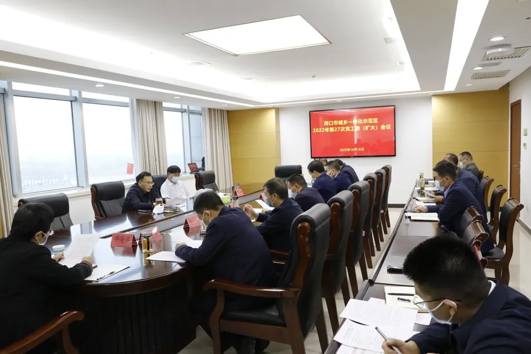 10月15日,市城乡一体化示范区党工委书记宋力主持召开全区第27次党工委(扩大)会议,传达学习中国共产党第十九届中央委员会第七次全体会议公报精神,研究部署下一步重点工作。区领导张晓、王轶、王磊、李培华、韩华、丁有亮、何学民、杨宏伟、邢海荣参加会议。