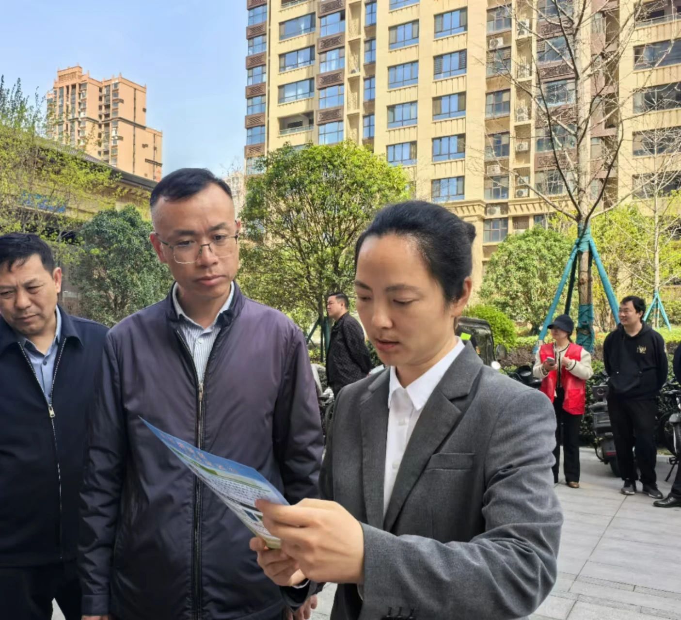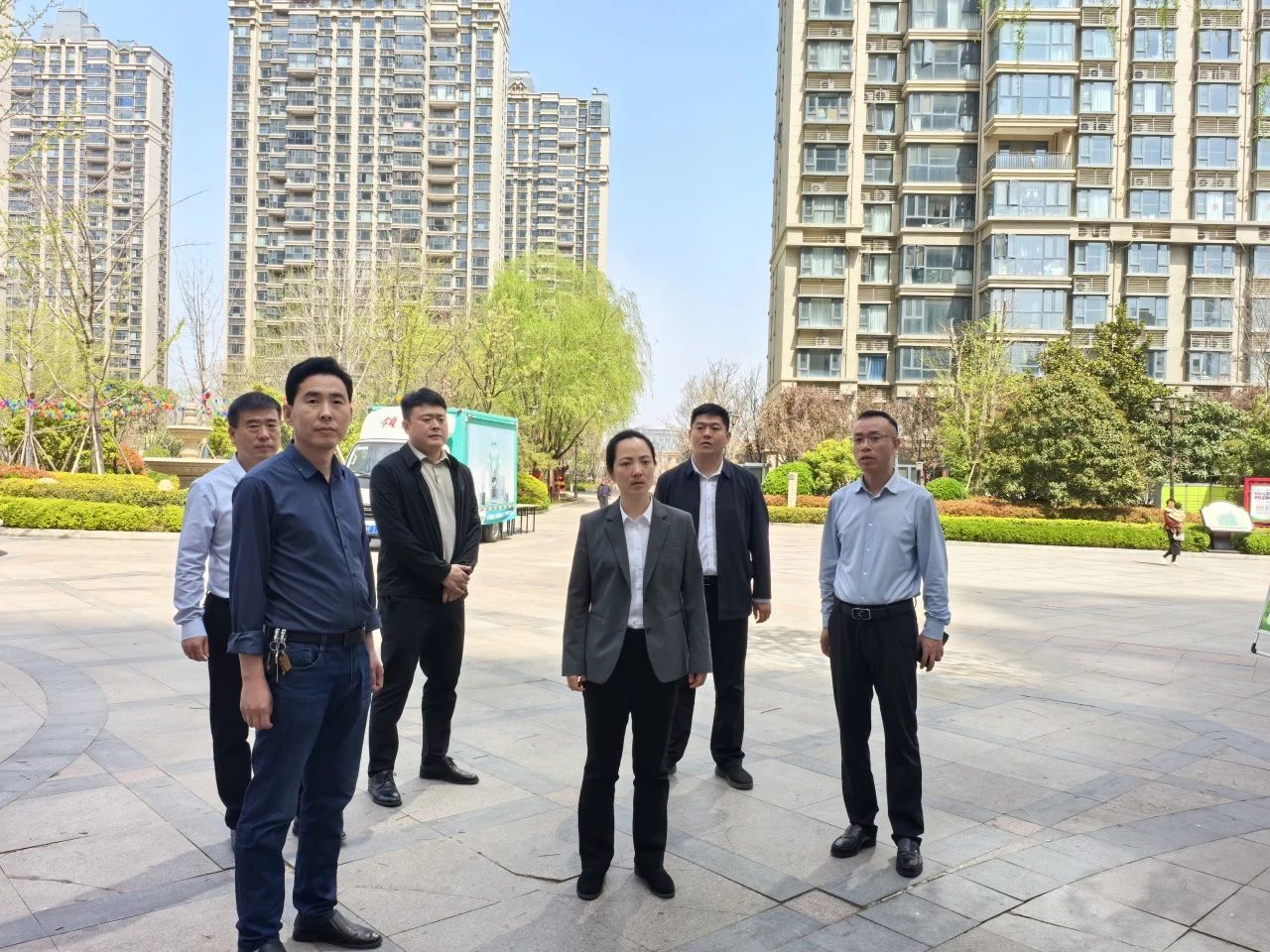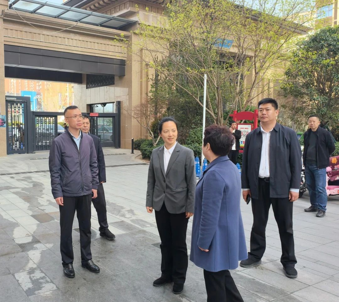 李嫣一行实地查看并了解了各社区内垃圾分类桶站设置及使用情况,现场听取社区书记和物业负责人关于垃圾分类、宣传引导、分类投放、收运处理等方面的介绍。