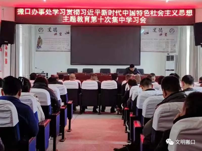 为推动学习贯彻习近平新时代中国特色社会主义思想主题教育走深走实,11月13日,搬口办事处党委副书记、主任李建林以“学思想、强党性、重实践、建新功”总要求为指导,从“坚持以人民为中心”为切入点,讲授专题党课,全体干部职工、各村社区支部书记共100余人参加党课学习。