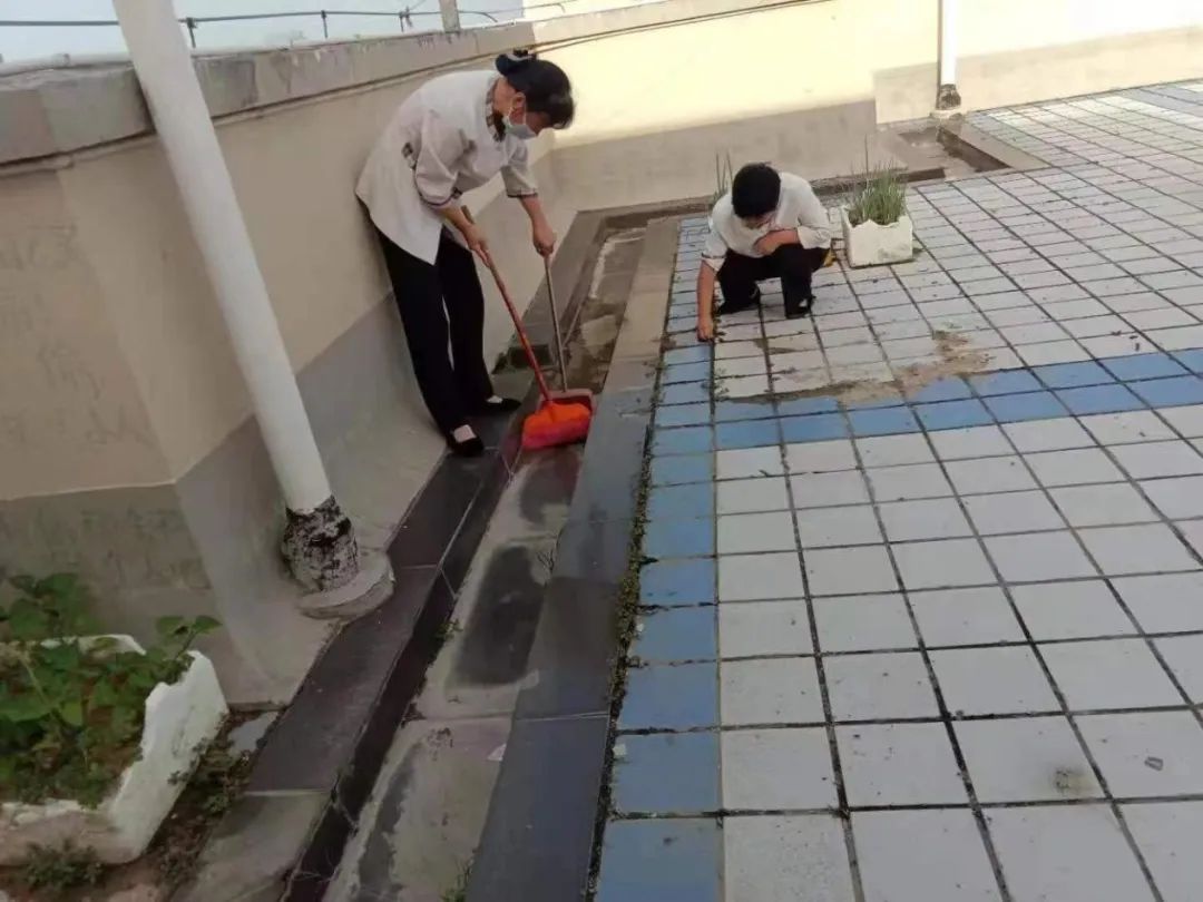 清理楼顶杂物、拔除楼顶杂草、清理楼顶雨水沟和下水口......在活动现场,啄木鸟志愿服务队头戴志愿小红帽,手拿扫帚、簸箕等清洁工具,紧盯社区脏乱差,哪里需要清洁,哪里就有他们的身影。“啄木鸟”们四处穿梭在楼栋间,烈日炎炎但她们的服务热情不减,在志愿服务活动中扮靓社区环境,同时带动身边的居民自觉参与到垃圾清理活动中来。经过全体人员的共同努力,本次活动共计清理31栋楼楼顶杂草,清理排水管道口43个,清理园区杂草60公斤。