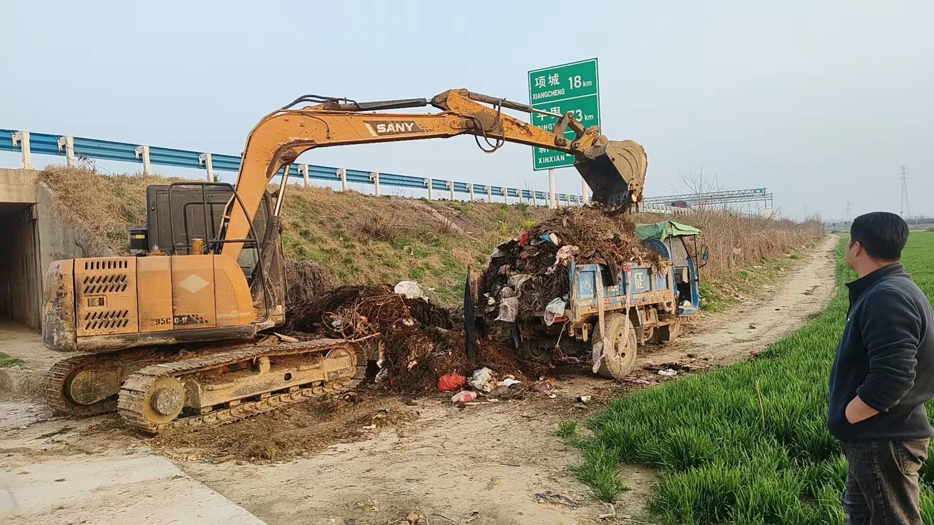 为确保整治行动取得实效,永福办事处强化统筹部署,压实工作责任,构建“上下联动、全员参与、闭环推进”工作格局。整治过程中,办事处坚持精准施策、综合发力,采取“机械+人工”联合作战模式,全方位、无死角推进环境清理整治。此次行动累计投入挖掘机、吊车、板车等机械50余辆,组织工作人员150余人次,重点对大广高速、郑阜高铁沿线等关键区域开展“地毯式”清理,针对沿线14处坑塘沟渠实施综合整治,集中清运积存垃圾、彻底清理卫生死角,全力清除沟渠淤积,让曾经的“脏乱差”变为如今的“洁净美”,沿线沟渠重新恢复清澈整洁,周边环境焕然一新。