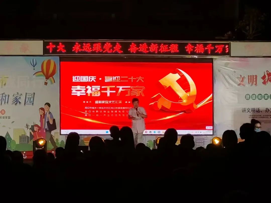 当晚,文艺汇演在开场舞《醉太平》中拉开帷幕,表演者用优美动人的舞姿,燃起了现场观众的热情。在盛和家园中心小广场戏曲联唱、川剧变脸、歌曲、魔术等轮番登场,一个个精彩的节目,让现场观众精神上得到了满足,赢得了大家的阵阵掌声,节目既展示了对国家富强欣欣向荣的美好祝愿,又表达了人民群众喜迎盛世的自豪感。活动现场吸引了众多居民观看,大家欢聚一堂,共赏精彩的文艺汇演。