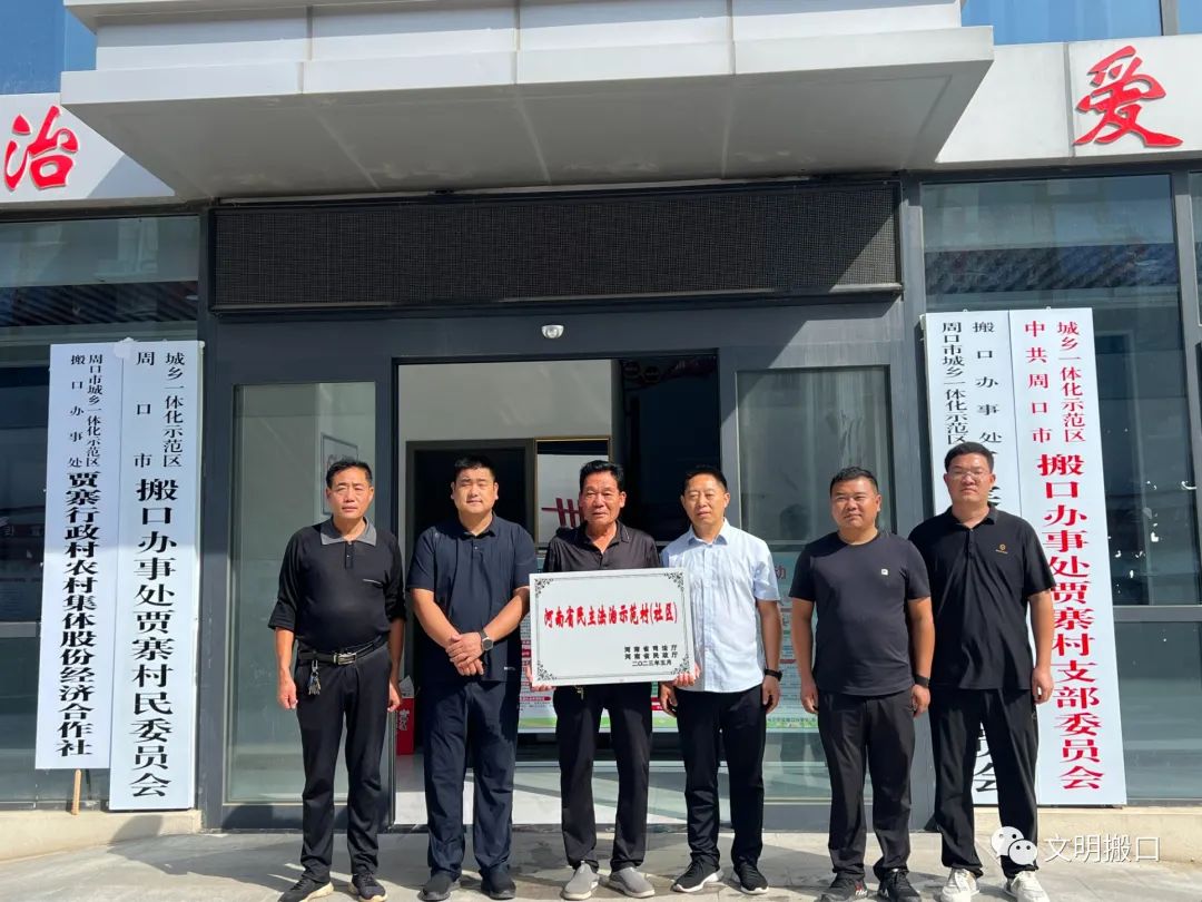 近日,河南省司法厅、河南省民政厅印发了《关于命名“河南省民主法治示范村(社区)”的决定》,示范区搬口办事处贾寨村获得此项荣誉称号。示范区信访维稳和法制办公室主任郝小木、搬口办事处主任李建林现场共同为贾寨村颁发获奖牌匾。